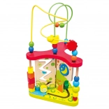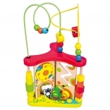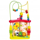 Ce labyrinthe d’activités multifonction en bois de la marque Bino est conçu pour divertir tout en développant les enfants. Les perles sur des fils métalliques, les éléments rotatifs et coulissants ainsi que les motifs d’animaux illustrés stimulent la curiosité, la concentration et la coordination œil–main.