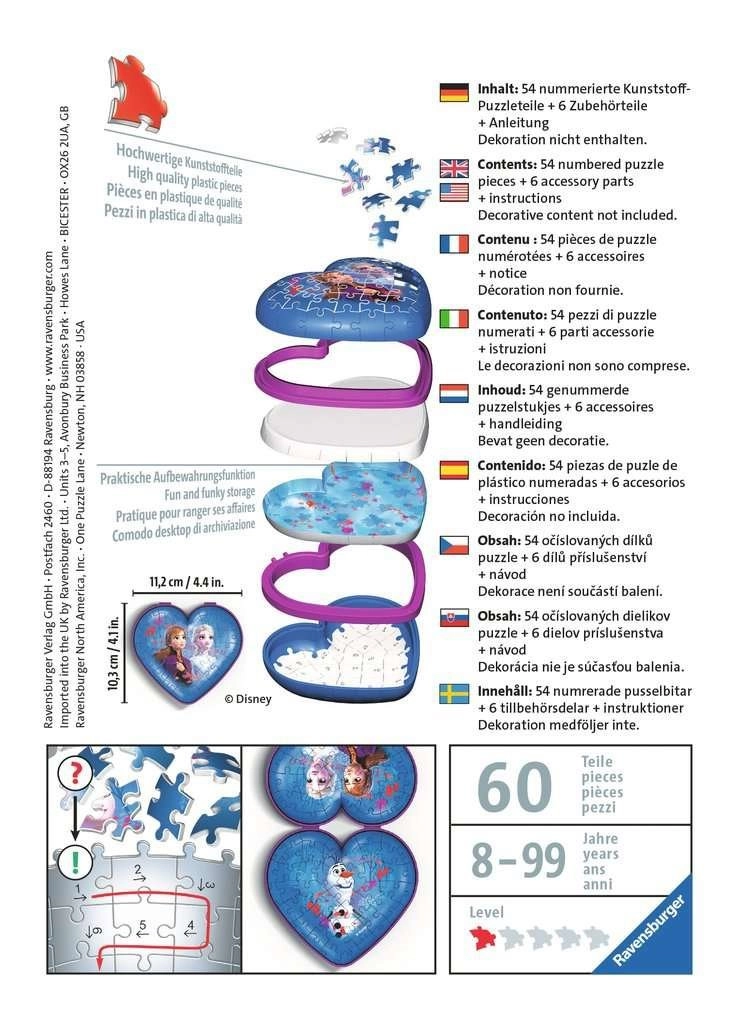 Assemblez un cœur 3D à l’effigie de Disney La Reine des Neiges 2 à partir de pièces en plastique avec la technologie EasyClick. Le cœur peut servir de boîte à bijoux et à divers petits objets.