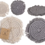 Découvrez des dessous de tasse en macramé alliant fonctionnalité et esthétique. Grâce à leur tressage robuste en coton avec une part de polyester, ils protègent efficacement les surfaces des auréoles, des rayures et de la chaleur, tout en servant de décoration raffinée.