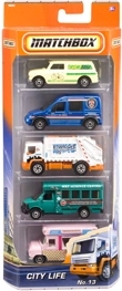 Set Angličák Matchbox apporte cinq véhicules finement détaillés avec roues pivotantes, idéal pour les collectionneurs et les enfants qui aiment inventer leurs propres aventures.