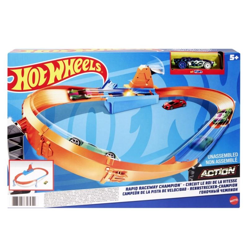 Découvrez un set de course riche en adrénaline où les jeunes pilotes s’affrontent dans 3 disciplines : circuit de drift avec départ latéral, courses parallèles avec compte à rebours et montée avec lancement fulgurant. Grâce au système modulaire, le set peut se combiner avec d’autres pistes HOT WHEELS pour créer un univers de vitesse spectaculaire.