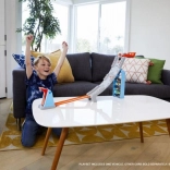 Tout est dans la boîte : rails orange, lanceurs, virages, drapeaux décoratifs et 1 voiture pour jouer immédiatement. Les pièces en plastique robustes supportent une action intense et développent la motricité fine, la coordination œil-main et la créativité.