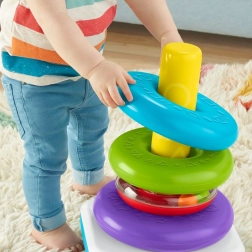 Cette pyramide d'anneaux est conçue pour maximiser le plaisir et l'apprentissage. Les enfants peuvent attraper et empiler les anneaux colorés sur une base basculante. Le plus petit des anneaux est conçu pour produire un son de cliquetis, grâce aux billes colorées à l'intérieur, offrant une stimulation sensorielle supplémentaire.