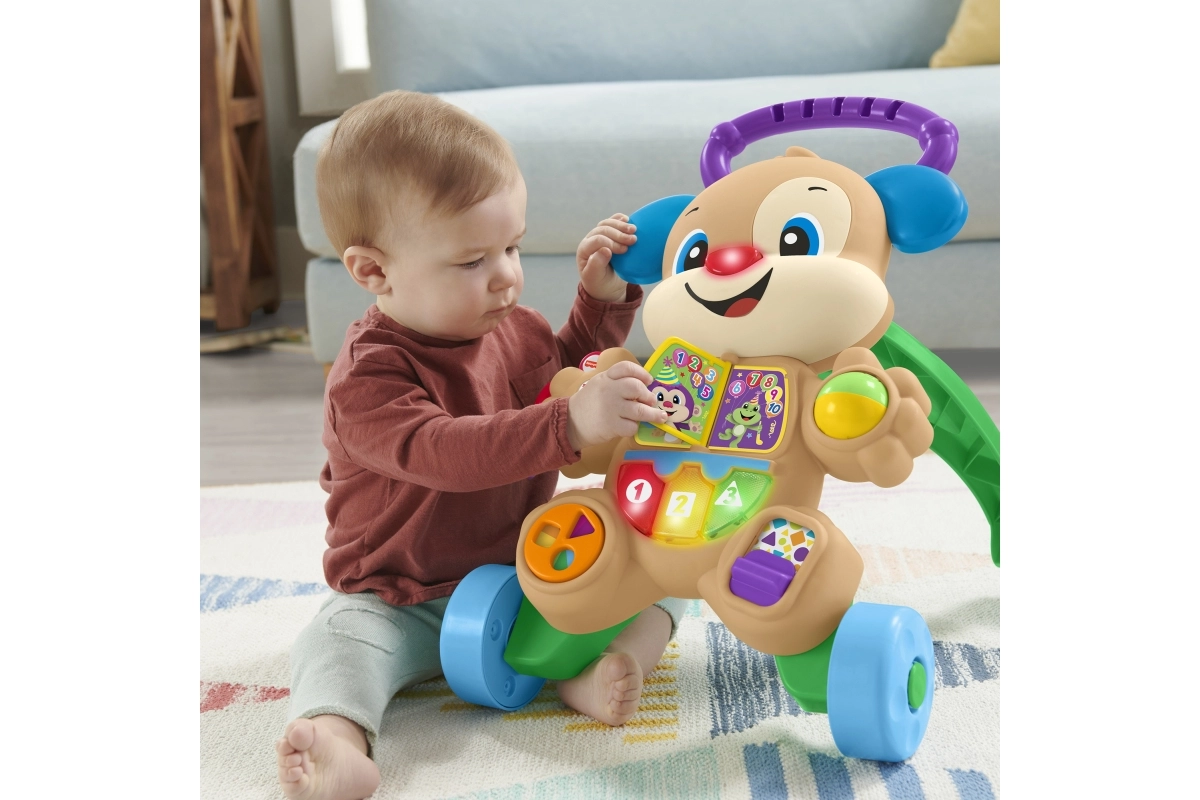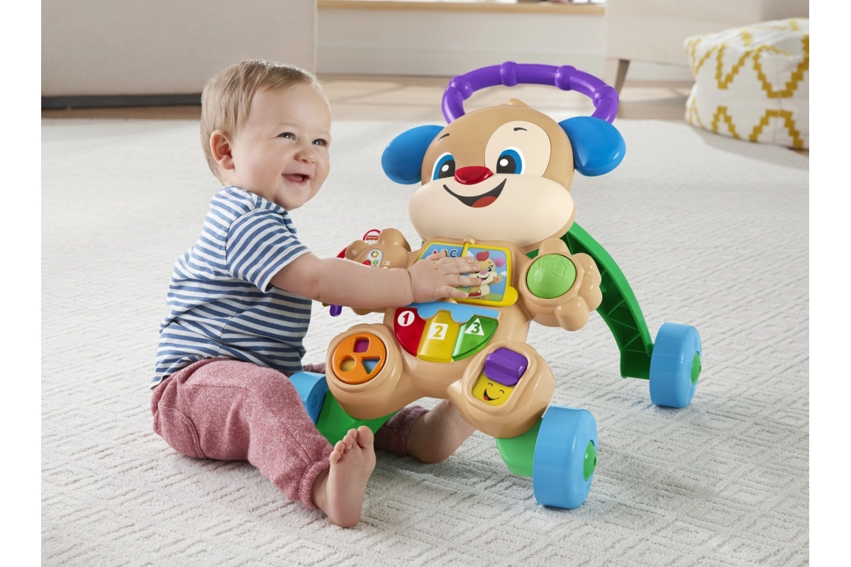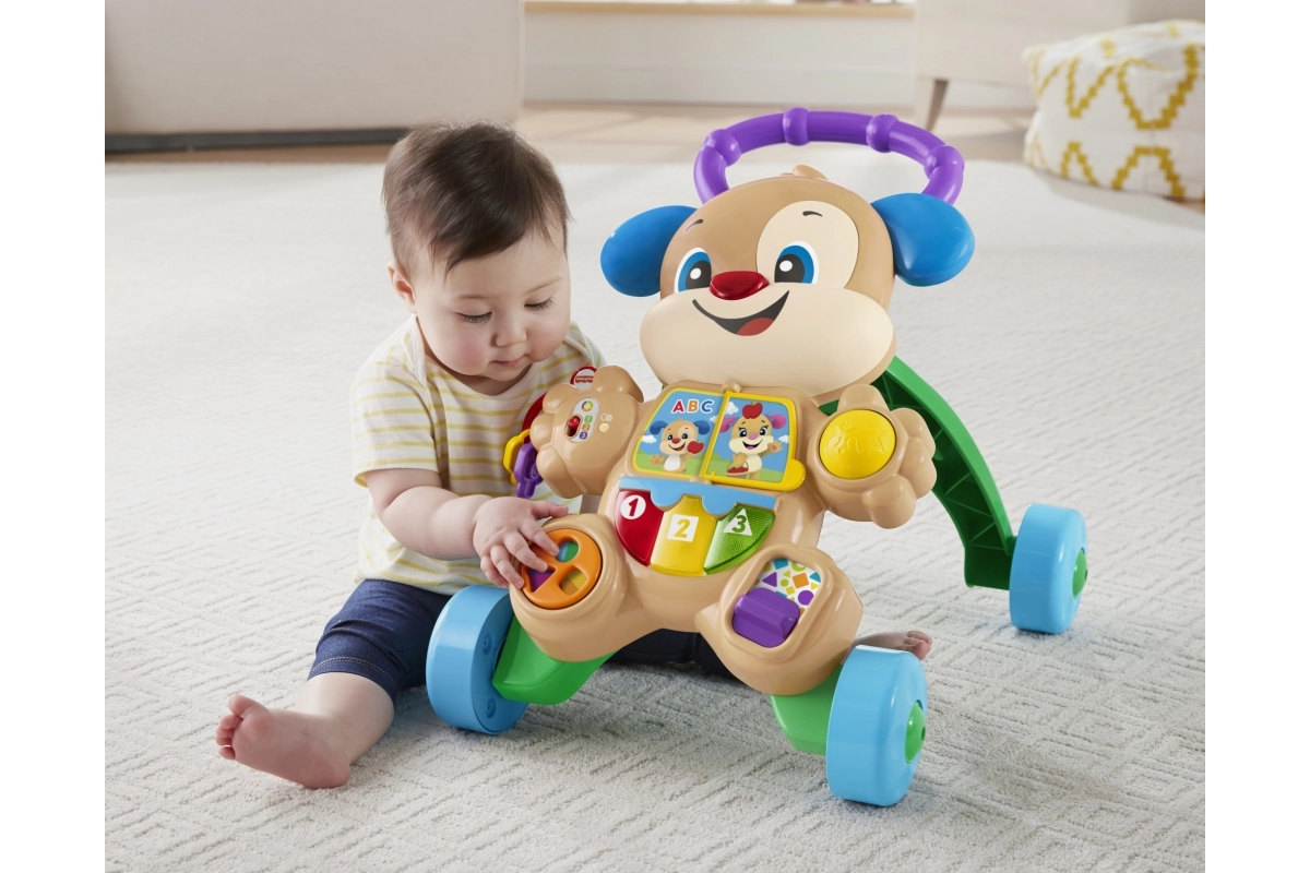 Le trotteur interactif en forme d’adorable chiot est le compagnon idéal, du premier assis jusqu’aux premiers pas autonomes. Les enfants découvrent des lumières, sons et chansons qui les motivent à bouger et à apprendre. La poignée stable et les roues larges aident à l’équilibre, tandis que le panneau d’activités développe la motricité fine et globale.