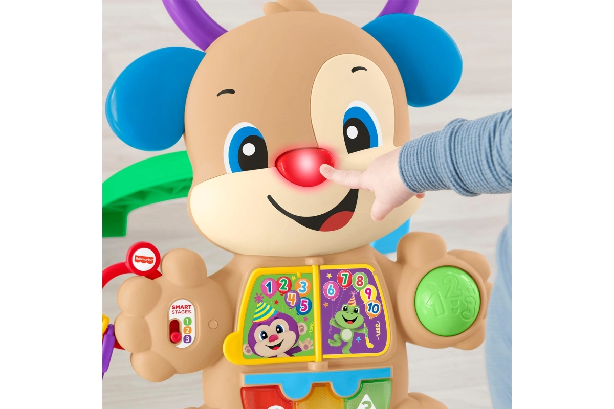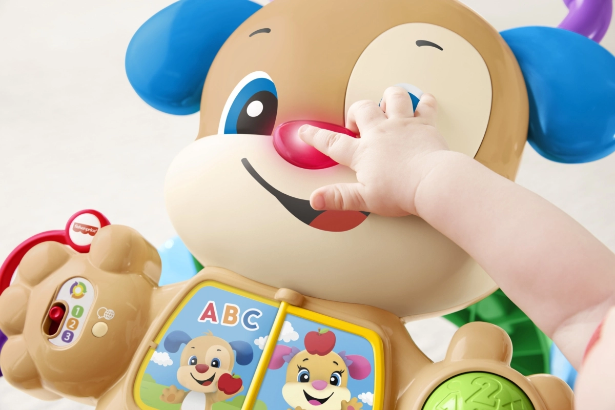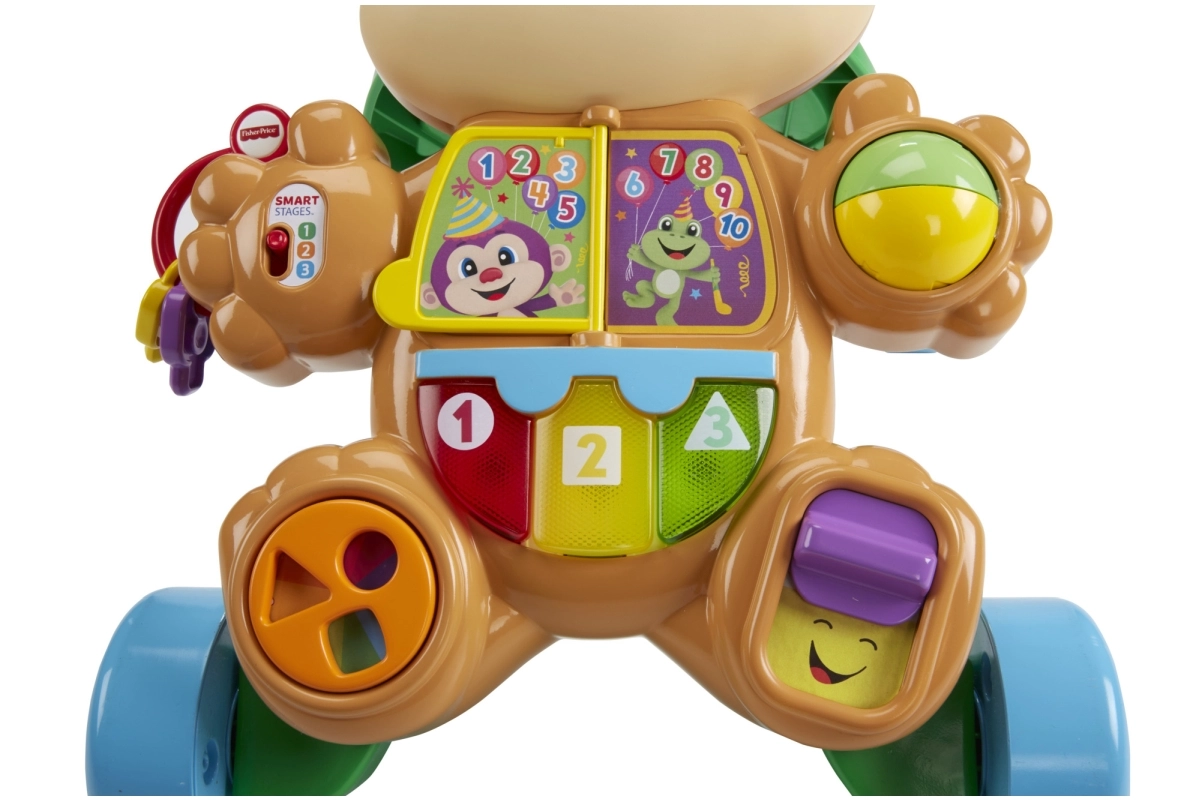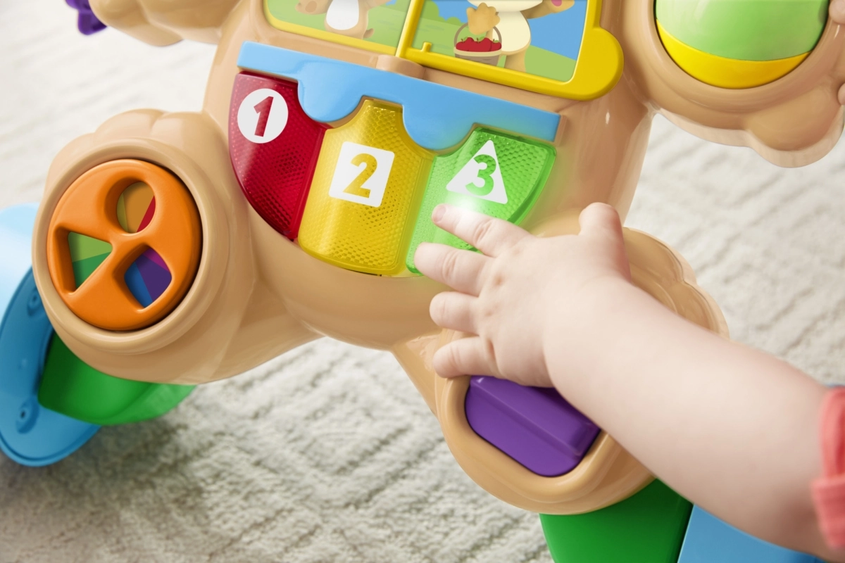 La technologie Smart Stages propose plusieurs niveaux d’apprentissage – des mots et sons simples jusqu’à l’alphabet (ABC), les chiffres (123), les couleurs et les formes, y compris des mots anglais de base. Les enfants exercent leur logique et comprennent le principe de cause à effet en appuyant sur les boutons, en tournant les roues ou en faisant avancer le trotteur.