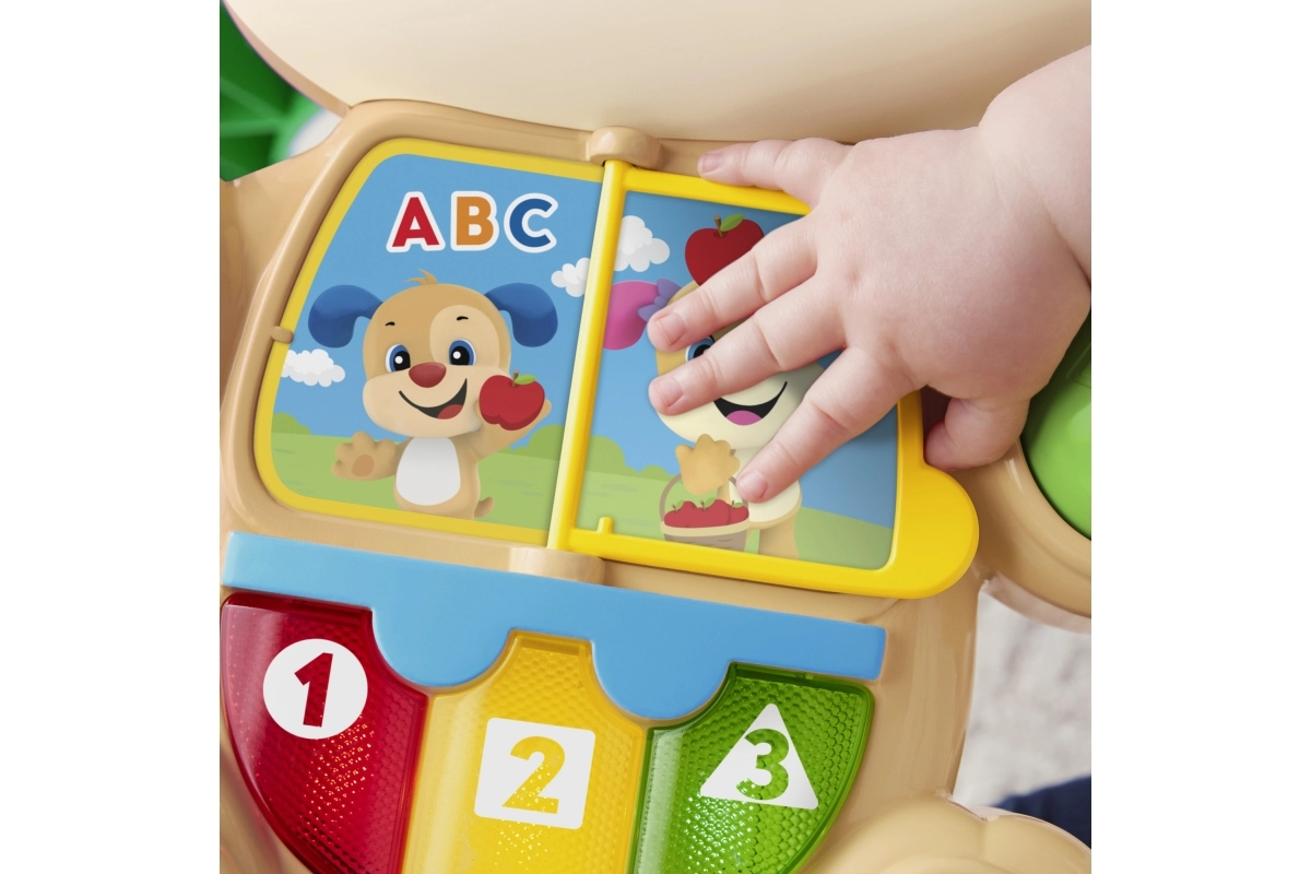 Des boutons, des lumières, des engrenages, des curseurs et un petit livre avec le chiot développent la motricité fine et enseignent le principe de cause à effet. La musique et les phrases motivent à poursuivre les activités.