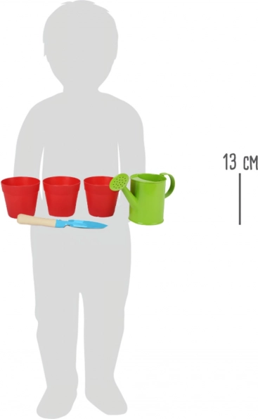 • Set complet pour petits jardiniers : 3 pots, 1 arrosoir, 1 pelle