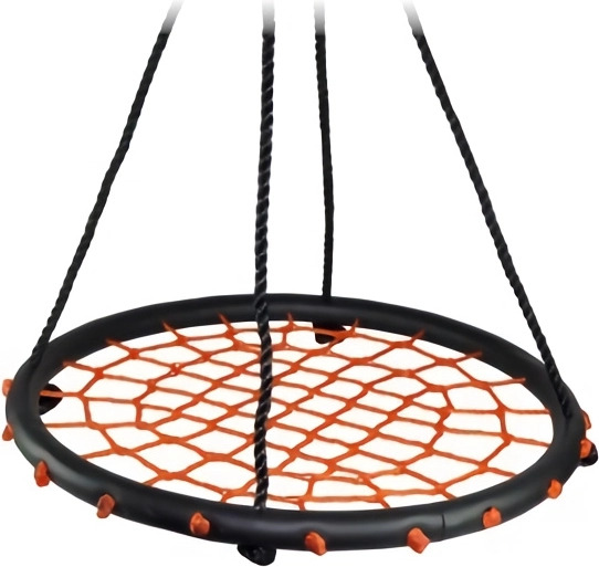 Balançoire circulaire avec tressage en corde, adaptée à une utilisation en extérieur comme en intérieur. Caractéristiques principales : diamètre de la balançoire 60 cm, capacité de charge 100 kg, utilisation intérieure et extérieure