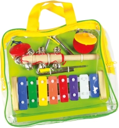 Découvrez le monde de la musique avec l’ensemble musical de la marque Bino ! Ce set de quatre instruments est idéal pour les petits musiciens afin de développer leur talent musical, leur ouïe et leur sens du rythme. Il comprend un xylophone, des castagnettes, un triangle et des grelots, le tout dans une pochette pratique pour un transport facile.