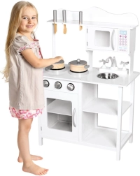 Petite cuisine compacte et robuste pour de petits chefs. Comprend un évier, une cuisinière et un four à micro-ondes avec accessoires. Convient aux enfants à partir de 3 ans.