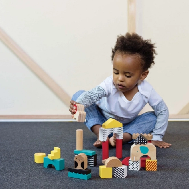 Les blocs sont fabriqués en bois issu de sources responsables et traités avec des peintures non toxiques à base d’eau. Grâce à leurs bords doucement arrondis et à leur taille adaptée aux petites mains, ils sont idéaux pour les tout-petits dès 18 mois. Un excellent choix pour un jeu libre qui stimule l’imagination, la logique et la perception spatiale.