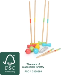 Profitez d’un classique des jeux de plein air avec un set de croquet de qualité en bois 100 % FSC. Des arceaux disposables à volonté permettent de créer différents niveaux de difficulté, pour que toute la famille s’amuse. Le croquet développe la motricité, la coordination des mouvements et une saine compétitivité – idéal au jardin ou au parc.