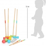 Le croquet en bois Small foot Active est un jeu intemporel pour enfants et adultes. Il suffit de planter les arceaux dans la pelouse et de les espacer plus ou moins, en différentes formations. Vous adaptez ainsi les règles et le rythme de jeu aux capacités et à l’âge des participants.
