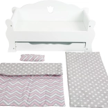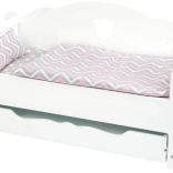 Le tiroir de rangement coulissant sous le lit, de 42×20 cm, est l’endroit idéal pour tous les accessoires ou jouets indispensables. Le lit convient non seulement au sommeil des poupées, mais aussi comme élément décoratif dans la chambre d’enfant.