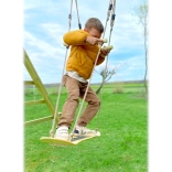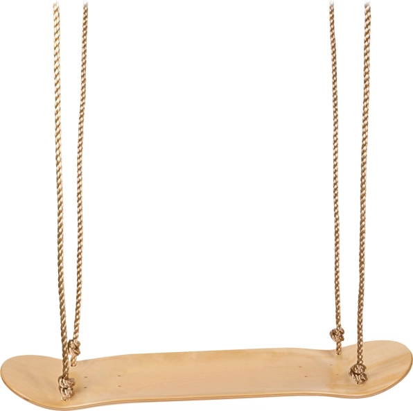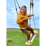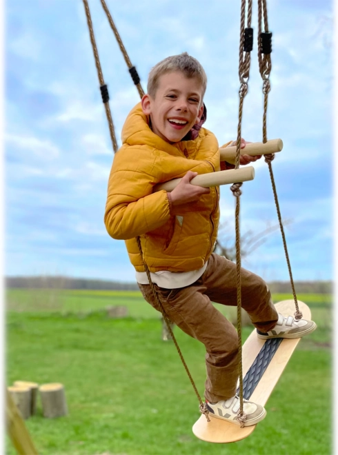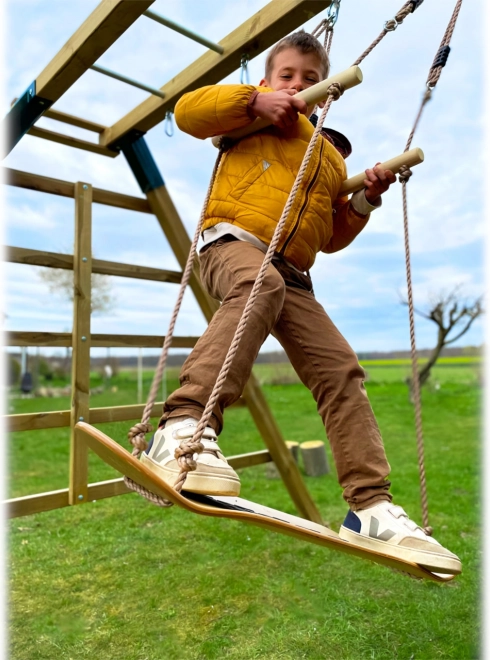 Les poignées en bois robustes sur les cordes se règlent facilement à la hauteur idéale. Elles offrent un appui lors de la prise d’élan et du balancement debout.