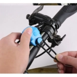 Le montage se fait en un instant, sans outils. La fixation universelle convient à la plupart des guidons de 23,8–31,8 mm de diamètre. 5 modes sonores sont disponibles ; vous changez de mode en maintenant le bouton enfoncé pendant 5 secondes. L’alimentation est assurée par 2× CR2032, fournies dans l’emballage.