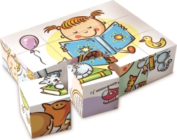 Cubes illustrés en bois / puzzle 3D et jeu de construction