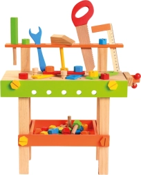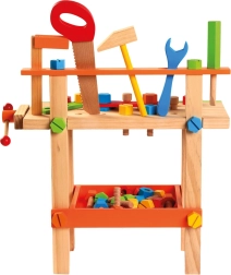 Cet établi pour enfants est idéal pour les petits artisans qui aiment visser, assembler et réparer. Grâce à sa construction solide, son plateau de travail perforé et son étau pratique, les enfants expérimentent des situations réelles et apprennent des compétences de base tout en jouant.