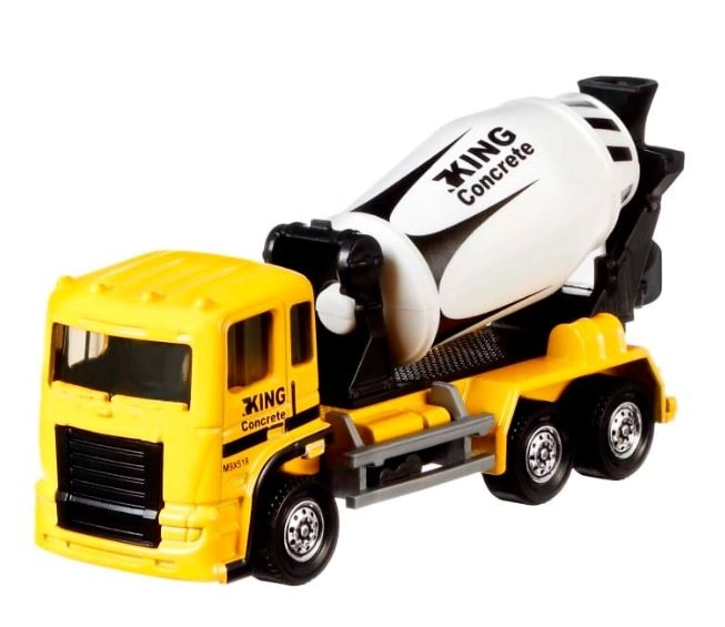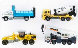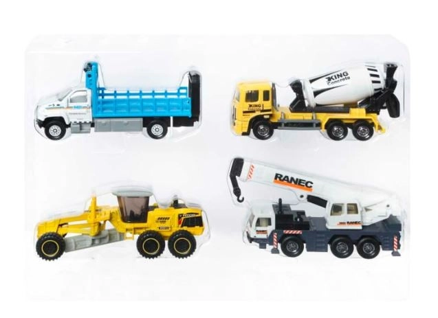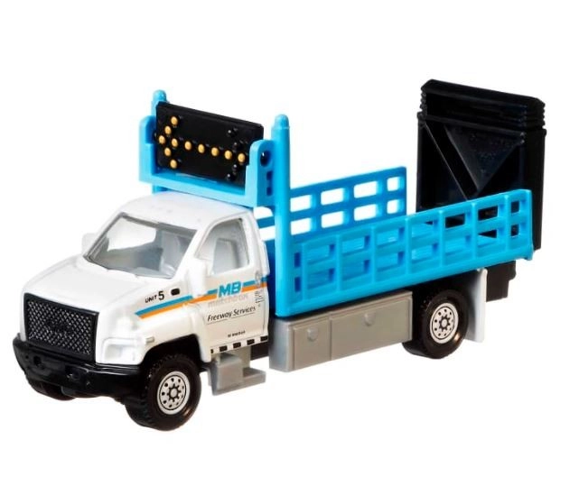 - Le set comprend les véhicules suivants de la collection Matchbox Working Rigs : GMC 3500 Attenuator Truck, MBX Mobile Crane, Road Grader et Cement King.