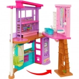 La maison de vacances dispose de deux niveaux et de six zones de jeu telles qu'une chambre, une salle de bain et un salon. Elle offre un design moderne de Barbie.