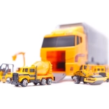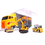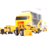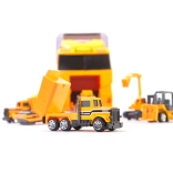 Le tracteur dispose d’un couvercle transparent et de compartiments pour les 6 véhicules. Les enfants ont toujours leurs engins à portée de main et le set se range et se transporte facilement.