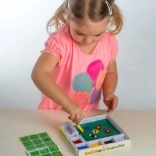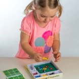 Cette mosaïque est un excellent choix pour les premières activités créatives. Les enfants utilisent la pince pour placer les billes colorées sur la plaque et créer des motifs simples ou originaux. L’activité favorise la patience, la coordination œil-main et le développement de la motricité fine.