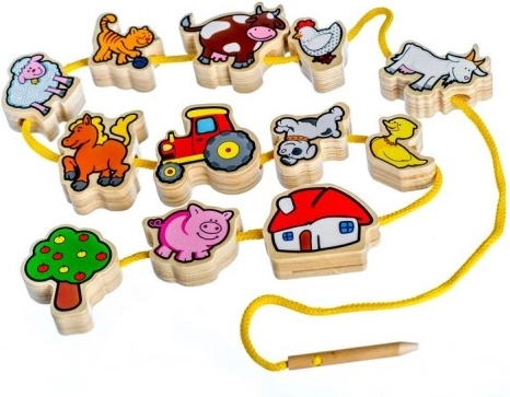 Ce jeu d’enfilage en bois est un outil idéal pour les plus petits. Il leur permet d’apprendre à reconnaître les animaux tchèques traditionnels et leurs petits. Les activités ludiques liées à l’enfilage encouragent la narration d’histoires et apprennent aux enfants non seulement la patience, mais aussi la reconnaissance des couleurs.