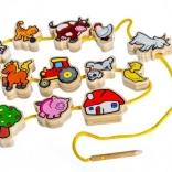 Le set comprend 12 pièces en bois, une aiguille en bois, une cordelette en coton et une pince en bois. Les motifs joyeux et colorés sont conçus pour capter l’attention des enfants et constituent un excellent support pour l’apprentissage comme pour le jeu.