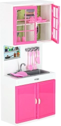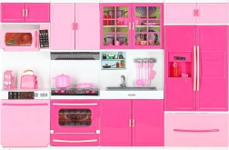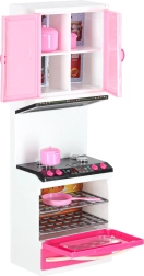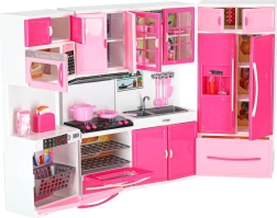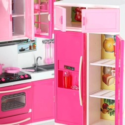 Cette cuisine moderne pour poupées ouvre aux enfants un univers de fantaisie en imitant les activités quotidiennes. Les quatre segments connectés permettent de composer une cuisine complète avec tous les éléments essentiels – de la cuisinière avec four au réfrigérateur et à l’évier. Les brûleurs éclairés par LED et les sons confèrent au jeu de cuisine une touche de réalisme.