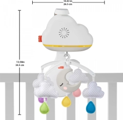 Mobile et veilleuse Calming Clouds™ de Fisher Price offre un sommeil paisible à votre enfant grâce au mouvement, à la musique, aux sons et aux lumières. Grâce au capteur sonore, il est automatiquement réactivé lorsque l'enfant émet un son.