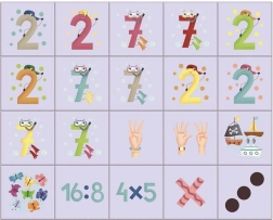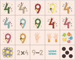 - chiffres, signes mathématiques, symboles par points, illustrations de doigts qui comptent