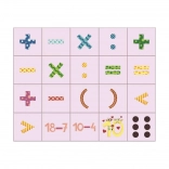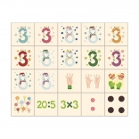 Un apprentissage ludique du calcul dès les premiers pas : le set Dino propose 20 solides cubes en bois avec des chiffres, des signes mathématiques, des symboles par points et le comptage sur les doigts. Fabriqué en bois d’épicéa tchèque, il développe la pensée logique, la motricité fine et la créativité des enfants dès 3 ans.