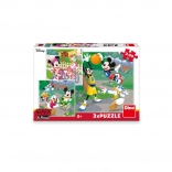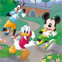 Découvrez la magie des puzzles avec les personnages DISNEY préférés. Le set de trois puzzles de 55 pièces apporte les aventures sportives de MICKEY, MINNIE et leurs amis – course, basket et vélo. En assemblant, les enfants entraînent patience, raisonnement logique et coordination œil-main.