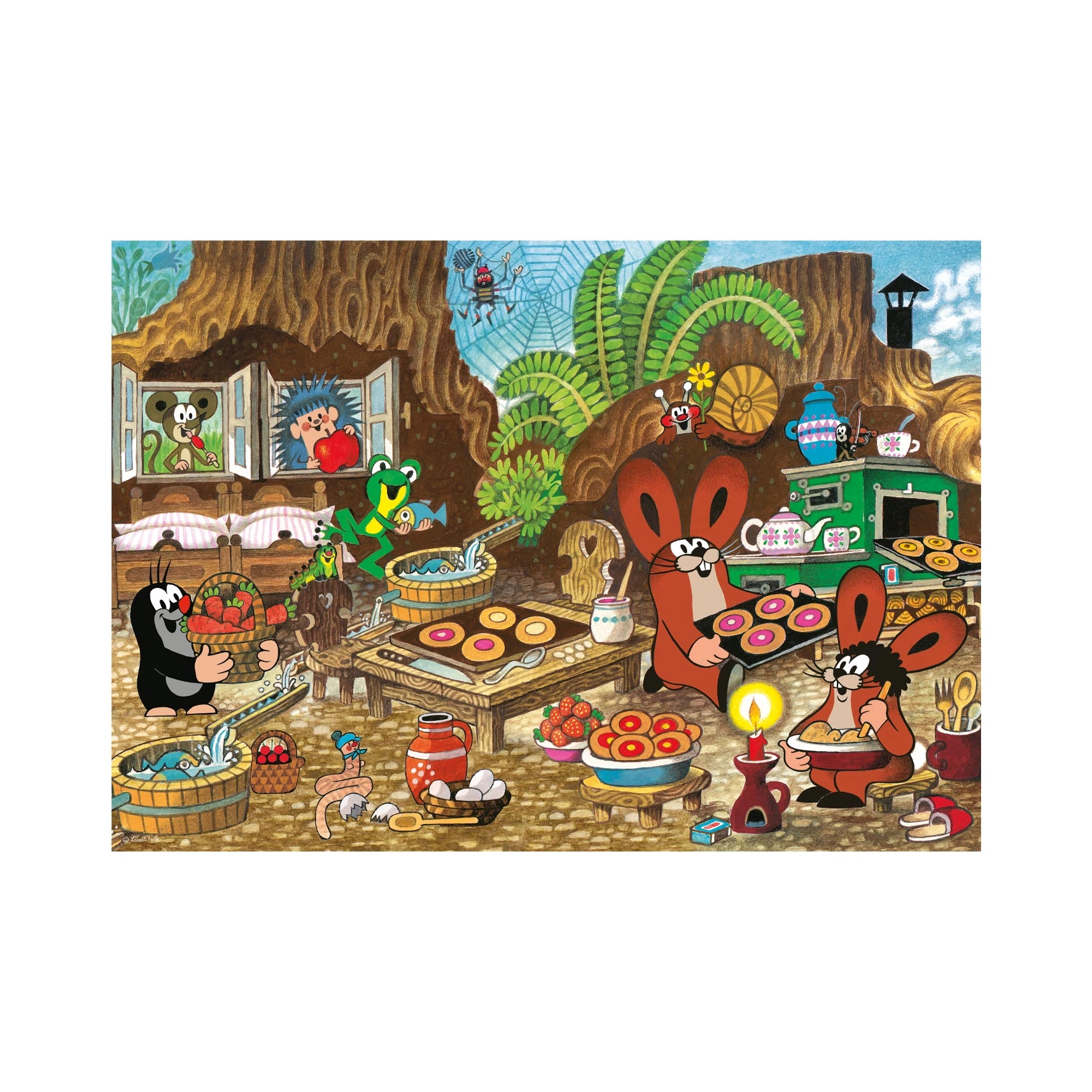 Puzzle pour enfants amusant avec le motif de LA PETITE TAUPE dans la cuisine, comportant 100 pièces extra grandes pour un assemblage facile dès 5 ans. Fabrication tchèque de qualité, carton résistant et sans danger pour la santé et nombre de pièces exact grâce à la technologie laser. Développe à merveille la patience, la motricité fine et l'imagination des enfants.