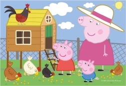 - Motif joyeux Peppa Pig avec des poules qui motive à l’assemblage