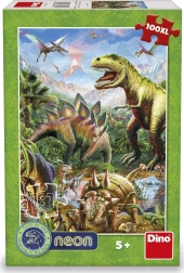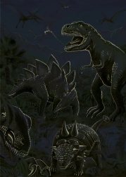Découvrez le monde des dinosaures grâce à ce puzzle néon incroyable ! Votre enfant s'amusera à assembler les pièces avec des éléments néon qui s'illuminent dans le sombre et révélant les contours des dinosaures avec une chaîne de montagnes dramatique en arrière-plan.