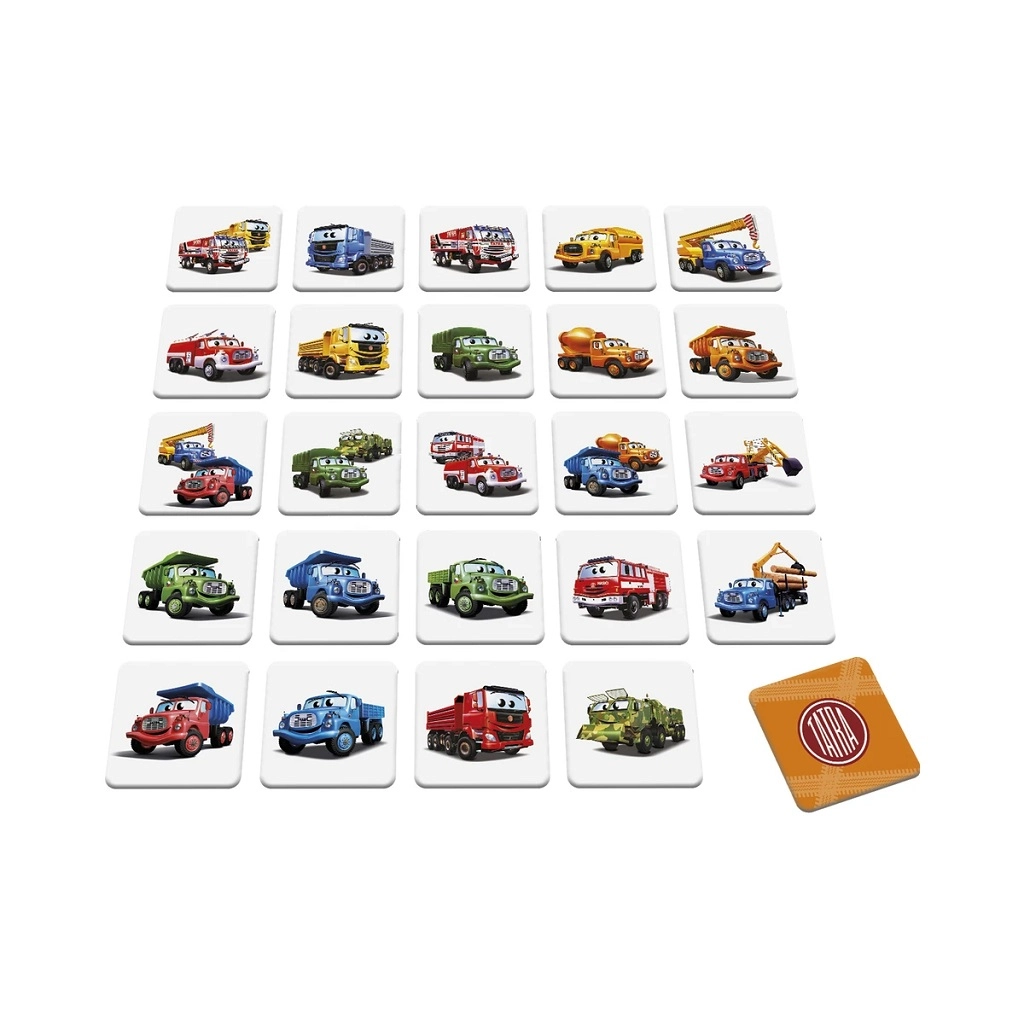 Le memory sous licence Tatra ravira les petits comme les grands fans des camions tchèques. Les cartes résistantes en carton sans substances nocives tiennent bien en main, se retournent facilement et sont prêtes à jouer dès l’ouverture – sans découpage. Une activité familiale idéale pour développer la mémoire, la concentration et un sens aigu de l’observation.