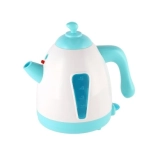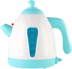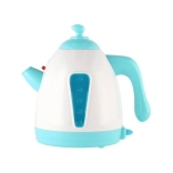 La théière est conçue comme un véritable appareil de cuisine avec un mélange de couleurs blanc et turquoise élégant.
