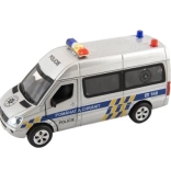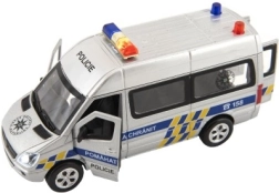 Solide petite voiture de police en métal avec accessoires en plastique qui ravira tous les petits gardiens de l’ordre. Elle offre des effets lumineux et sonores, une rétrofriction pour un démarrage rapide, des portes ouvrantes et est livrée avec piles incluses.