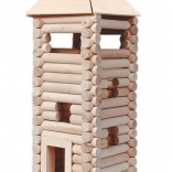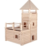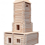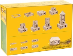 Le kit Vario XL est fabriqué en hêtre massif de haute qualité d’un diamètre de 15 mm. Ce kit offre des possibilités créatives infinies grâce à ses 184 pièces. Vous y trouverez tout le nécessaire pour assembler différents modèles, y compris des baguettes en bois de section 9x9 mm, des pièces pour pignons et toitures, des découpes en carton pour fenêtres et portes, ainsi que des impressions papier pour des détails précis.