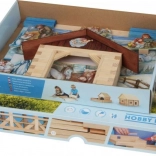 - Bâtonnets en bois de longueurs prédéfinies pour construire les murs en madriers