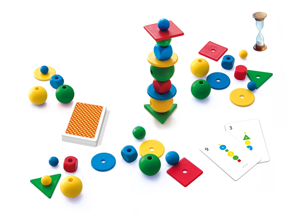 Vous trouverez 3 modes de jeu : course pour construire le modèle imposé le plus rapidement, construction de la tour la plus haute possible et mode d’adresse axé sur la stabilité et l’équilibre. Grâce à l’ensemble varié de pièces et à 16 cartes modèles, chaque partie est différente et riche en émotions.