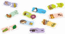 - 40 tuiles en deux parties avec des animaux (20 paires), sachet refermable, boîte avec exemples de motifs