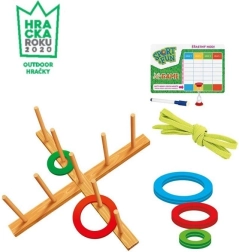 Un jeu de mouvement ludique et compétitif pour enfants et adultes, qui développe la précision, la vitesse et la condition physique. Essayez 6 variantes de jeu avec des anneaux à lancer sur un support en bois en forme de croix, jouez en extérieur comme en intérieur et profitez d’un divertissement familial à tout moment. Inclus: une ardoise effaçable, un feutre, un sablier et un mode d’emploi tchèque-slovaque.