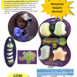 Ce paquet contient une pâte à modeler en quatre couleurs douces et phosphorescentes qui brillent dans l'obscurité. Un liant brillant assure que la pâte à modeler reste ensemble, ne sèche pas et permet aux enfants de jouer encore et encore.