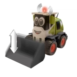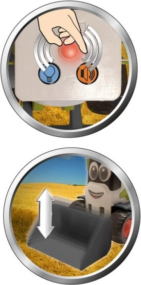Cette adorable chargeuse CLAAS Mini de couleur verte avec roues noires et détails rouges ravira les plus petits grâce à ses fonctions réalistes. En appuyant sur un bouton, vous entendrez le bruit du moteur et les feux d’avertissement s’allumeront. Le godet à commande manuelle permet une levée et une descente faciles, favorisant la motricité fine.