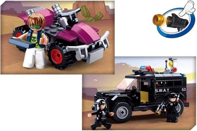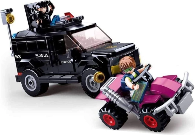 Ce set d’action SLUBAN POLICE apporte tout pour une intervention policière dramatique : un véhicule SWAT robuste, le quad ATV du fugitif et trois figurines détaillées avec accessoires. Grâce au plastique ABS de qualité, le modèle est résistant et prêt pour de longues heures de jeu.