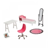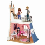 La maison offre un espace à deux étages avec de petites figurines et des accessoires comme un lit, une table et un miroir. Le plaisir du jeu imaginatif est garanti.
