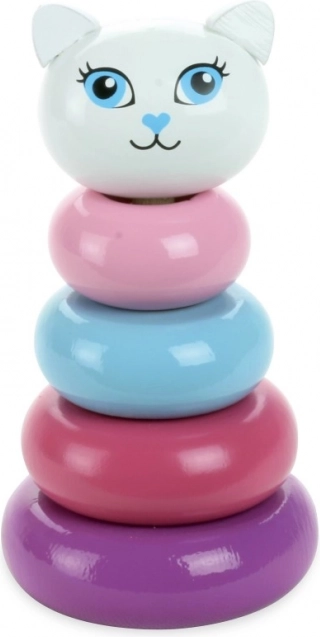 Tour à empiler Kitty est un joli jouet en bois verni aux couleurs pastel avec une adorable tête de chat. Idéal pour développer la motricité fine des enfants.