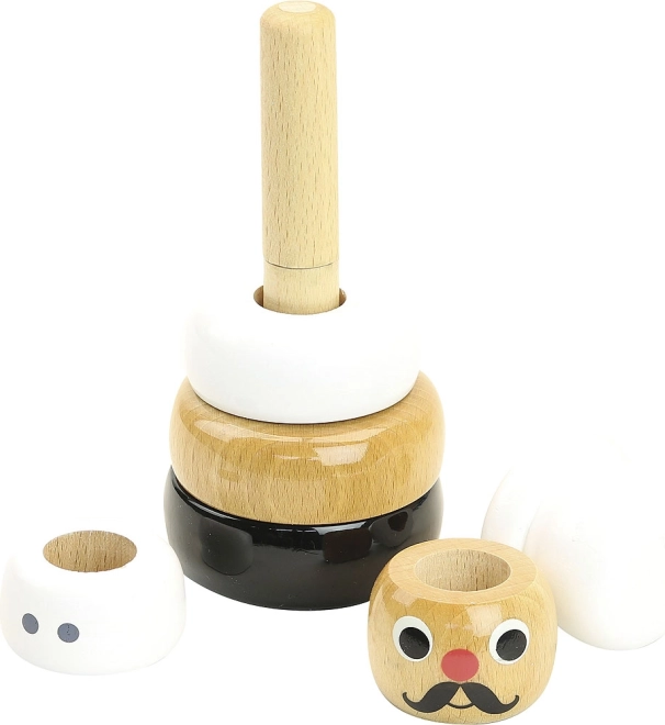 Empiler les pièces en bois sur la tige entraîne la prise en main, la précision des mouvements et la coordination œil-main – idéal pour les enfants dès 12 mois.
